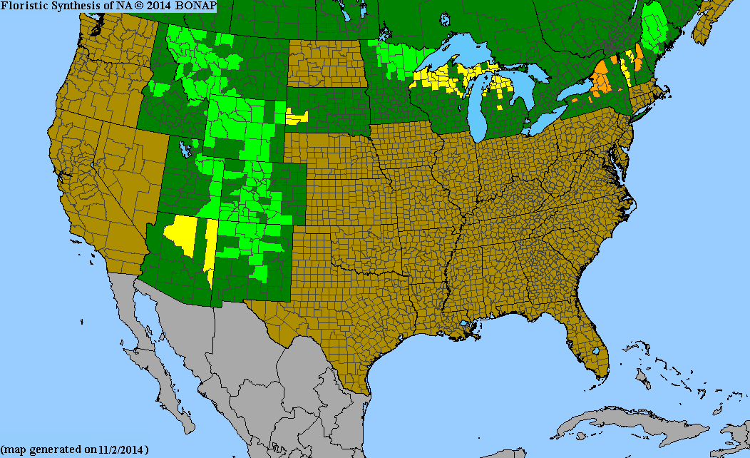 Life zones and habitat: Foothills to subalpine (7000 to 10500 ft.); under pine/spruce trees in moist areas, near springs and seeps.