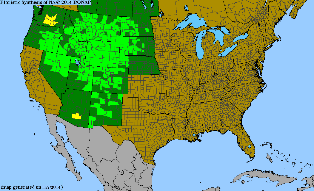 Life zones and habitat: Plains to montane (4600 to 10000 ft.); scattered or forming colonies in various types of dry soils and conditions: clay, sandy, shale, volcanic soils; flats, badlands, bluffs, exposed rocky ridges, roadcuts, grasslands, sagebrush and exposed sites in montane conifer forests.