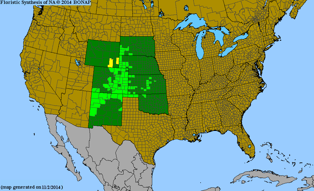 Life zones and habitat: Plains and foothills (3500 to 7000 ft); sandy or gravelly soils, shortgrass prairies, sagebrush shrublands. Plant: Perennial 8 to 24 inches tall with smooth, ascending to erect stems. Leaves: Basal and stem leaves, smooth, fleshy, gray-green with a waxy covering (glaucous) and entire margins; basal leaves absent by blooming, linear to oblanceolate, 2 to 3-1/2 inches long; 3 to 8 pairs of opposite, lanceolate to ovate leaves 1-5/8 to 3-1/2 inches long; sessile. Inflorescence: Four to nine clusters (whorls) of short-stalked flowers in the upper leaf axils; flowers are pink to lavender, sometimes with a bluish tint, have a flared, tubular corolla, 5/8 to 1-inch long with 2 upper lobes and 3 spreading lower lobes and are smooth externally; sterile stamen (staminode) with curved tip densely covered with short, golden hairs; 5 calyx lobes are ovate to lanceolate 4 to 8 mm long with pointed tips; leaf-like bracts between blossoms. Bloom Period: May and June. References: "Flora of Colorado" by Jennifer Ackerfield, Montana Field Guide, Flora of North America and Wildflowers of New Mexico. |