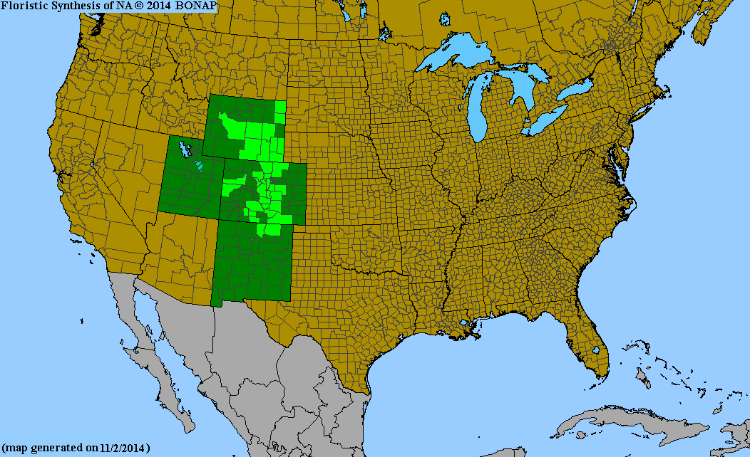 Life zones and habitat: Foothills to subalpine (5500 to 11000 ft); common in open meadows with gravelly soils. Plant: Erect, stout unbranched perennial 20 to 26 inches tall with smooth stems. Leaves: Basal leaves usually lanceolate, sometimes ovate with entire margins and 3/4 to 3-1/8 inches long; stem leaves linear-lanceolate to lanceolate, entire margins, 1-1/4 to 4-3/4 inches long and upper-most clasping; leaves smooth or hairy. Inflorescence: Flowers in 8 to 12 crowded clusters along stem, tending to be on one side; each 5-lobed corolla 1 to 1-3/8 inches long, blue to lavender and hairless externally; lower lobes smooth or somewhat hairy internally; staminode (unfertile stamen in center of blossom) tip hairy, rounded or with slight notch, and anthers usually hairy. Bloom Period: June to August. References: "Flora of Colorado" by Jennifer Ackerfield and Montana Field Guide. |